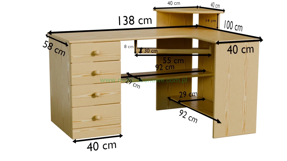 Biurko sosnowe narożne 138x100x75