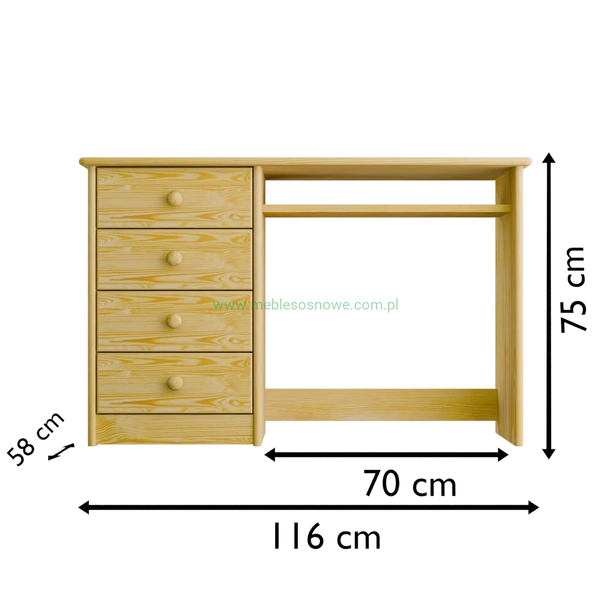 Biurko sosnowe uniwersalne 116x58x75
