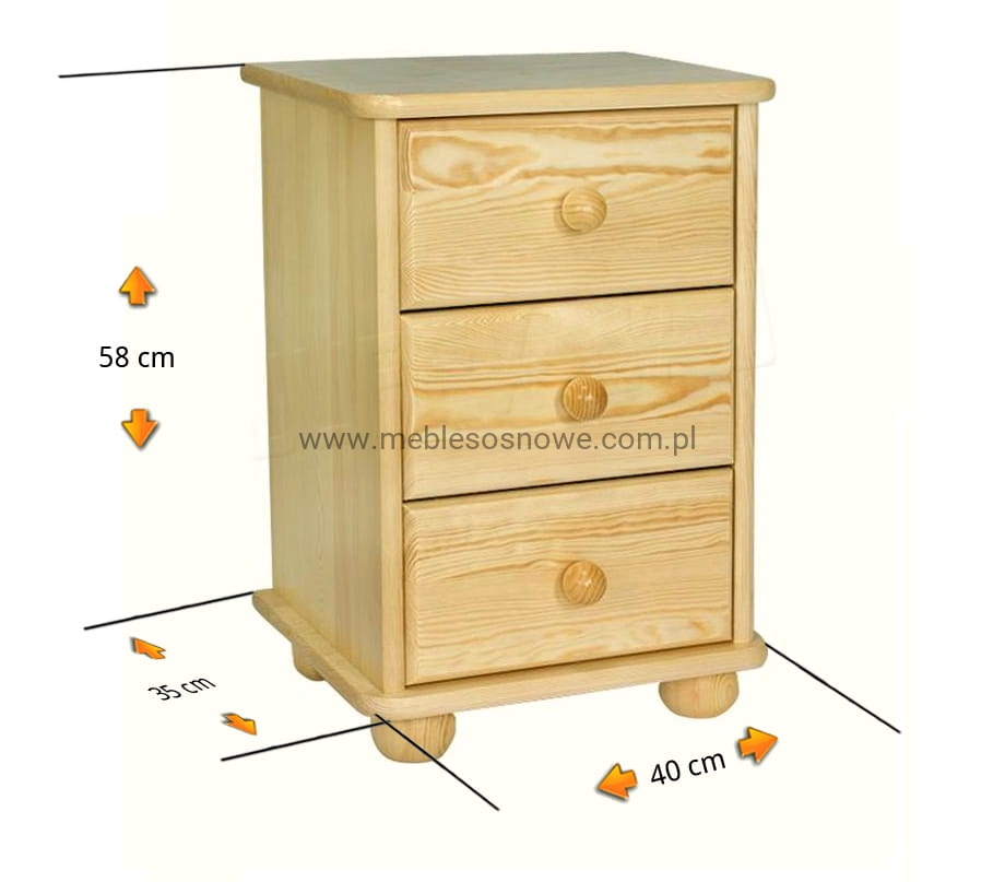 Komoda sosnowa nr 3 40x35x58 bejca: orzech