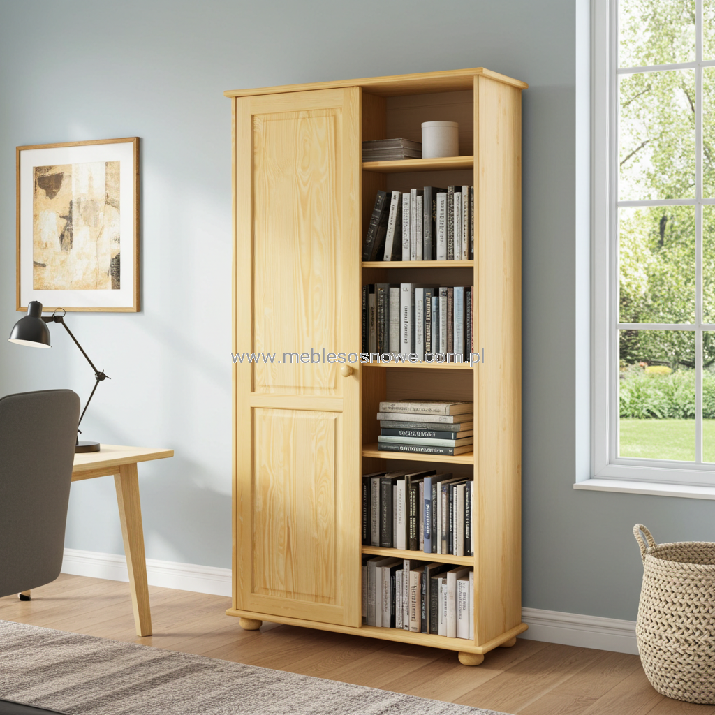 Regał sosnowy 100x35x180 z drzwiami i przegrodą