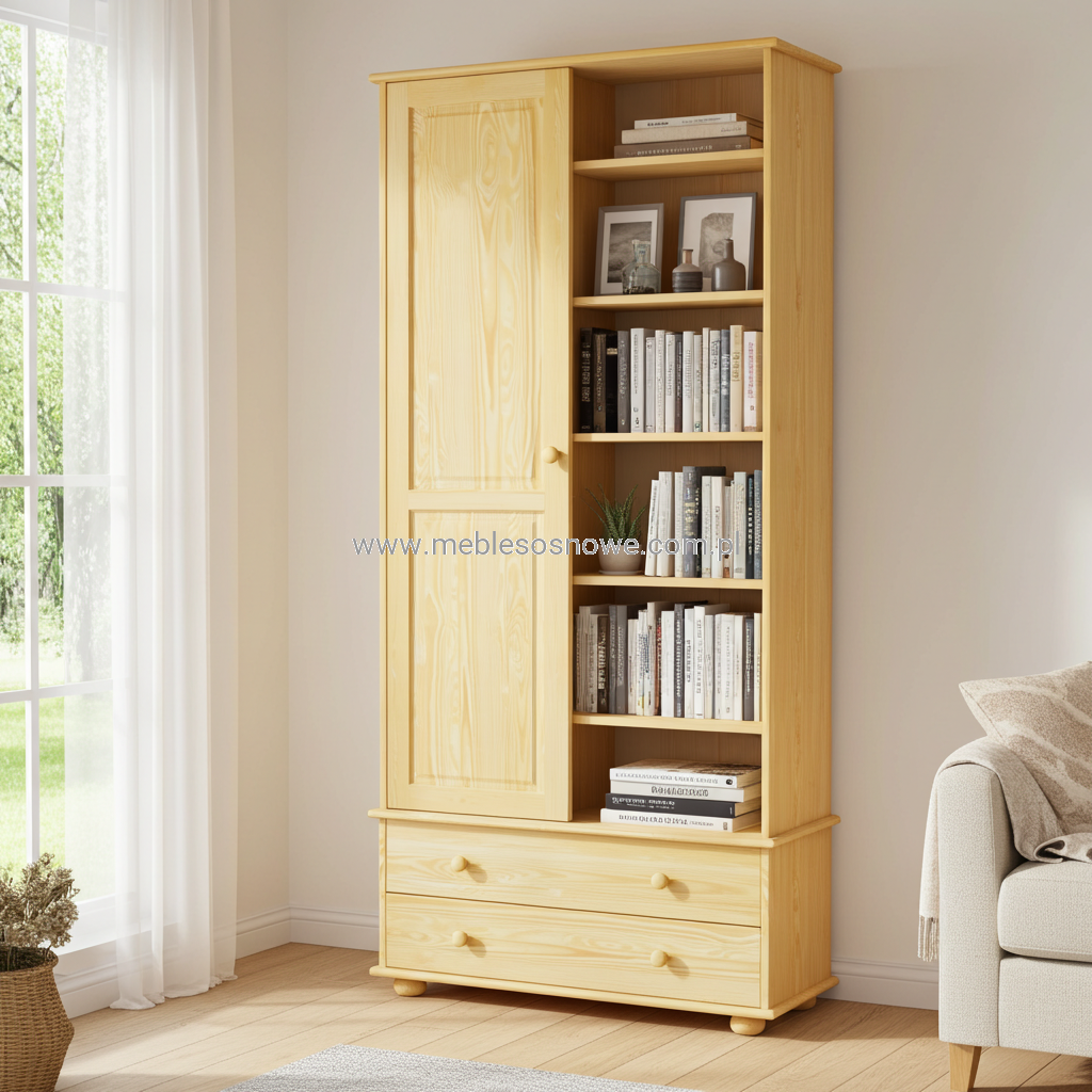 Regał sosnowy 100x35x220 z drzwiami i przegrodą