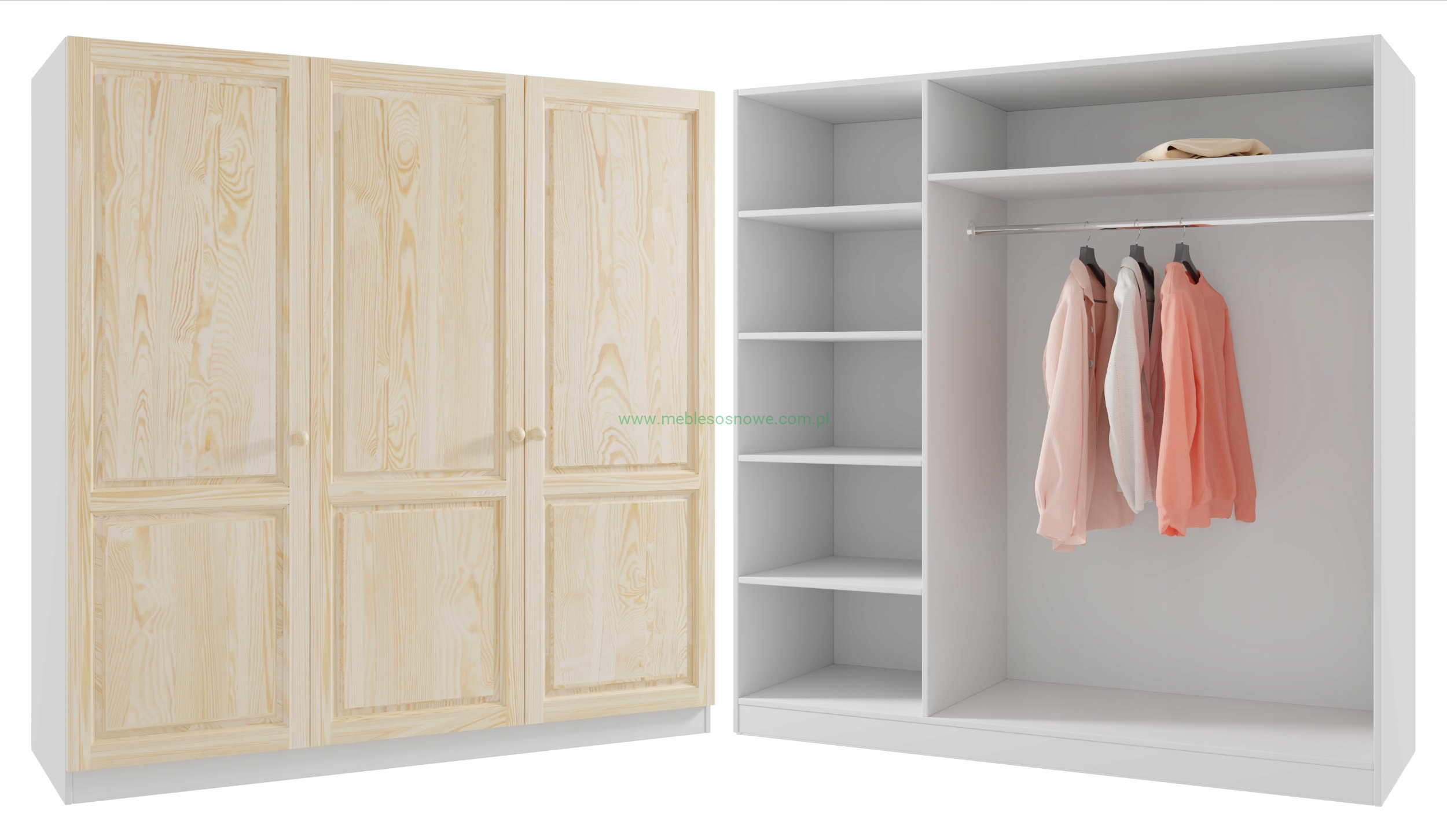 Dzień dobry! Prezentujemy Państwu szafę sosnową PŁYTA LAMINOWANA + DREWNO SOSNOWE szer. 180 cm składającą się z :