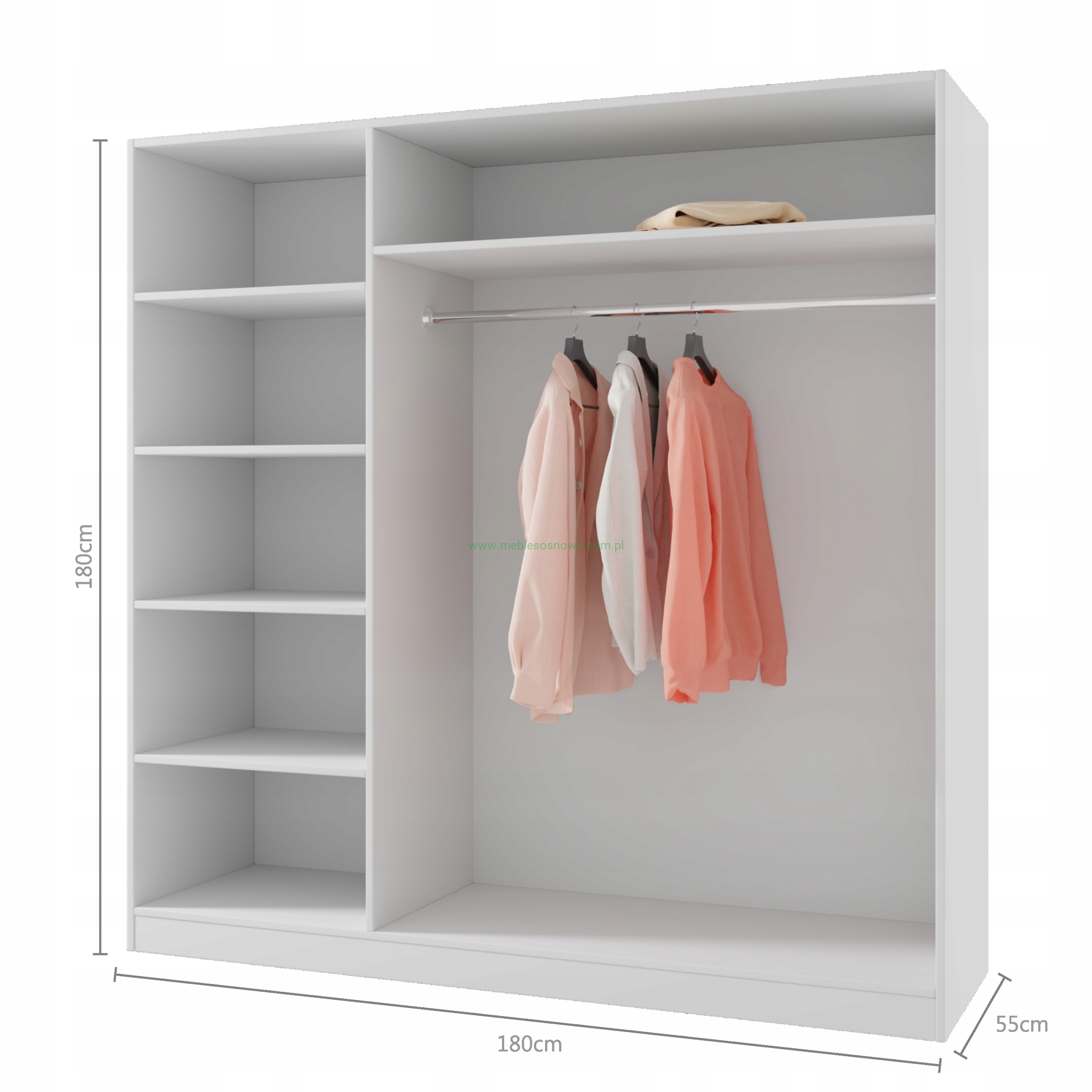 SZAFA 180/180 PÓŁKI+DRĄŻEK BIAŁA PŁYTA LAMINOWANA + DREWNO SOSNOWE