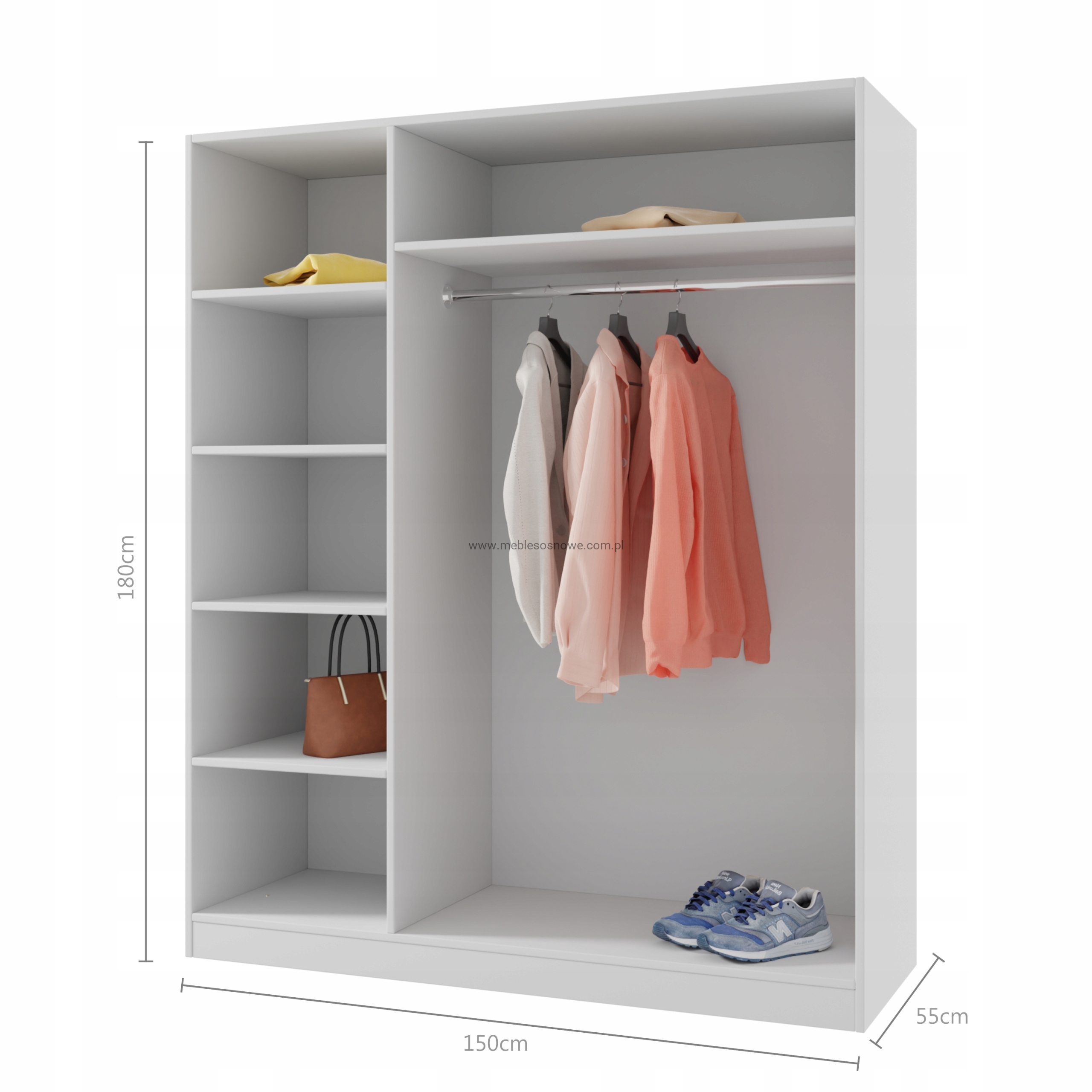 SZAFA BIAŁA PŁYTA LAMINOWANA + DREWNO SOSNOWE KOLOR 150/180 PÓŁKI+DRĄŻEK