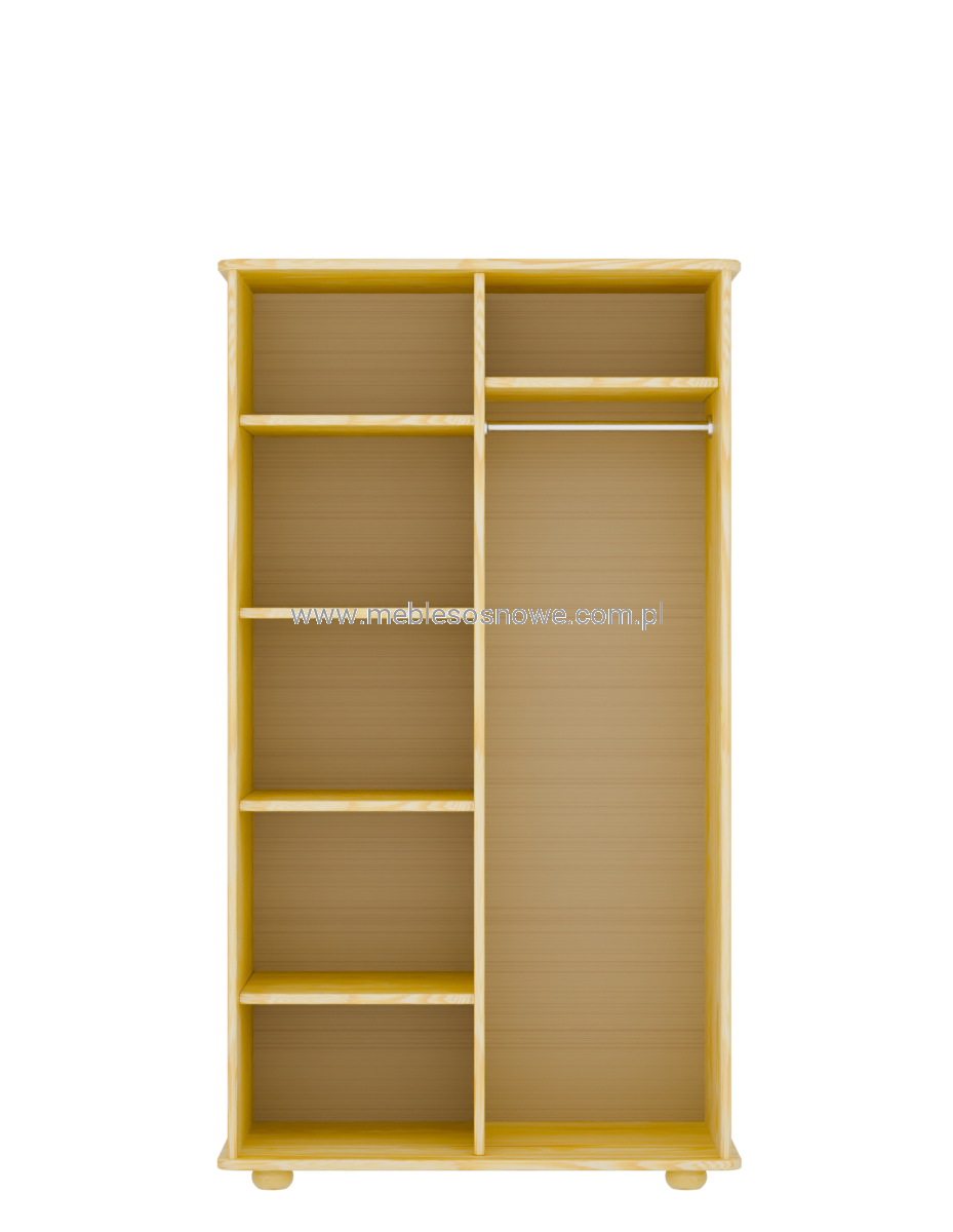 Mebel został wykonany w całości z naturalnego drewna sosnowego, co gwarantuje trwałość, solidność i estetykę na lata. Widoczne słoje nadają każdej szafie unikalny charakter, podkreślając naturalny styl wnętrza.