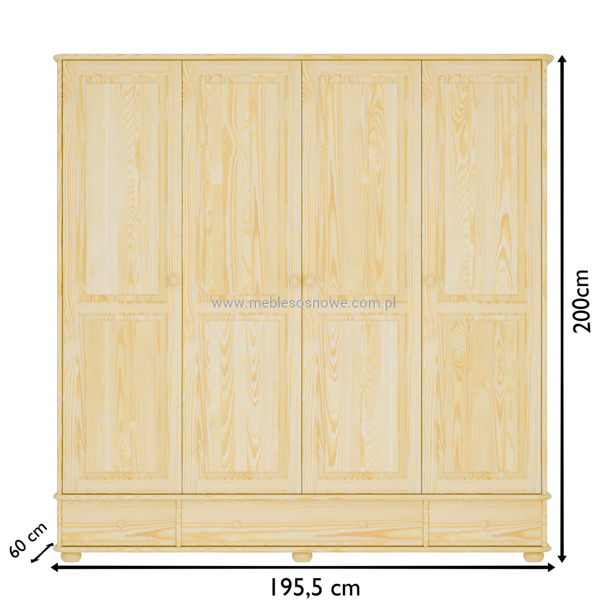 Kup szafę sosnową 195,5 cm z litego drewna i ciesz się funkcjonalnym, estetycznym meblem, który posłuży Ci przez wiele lat!