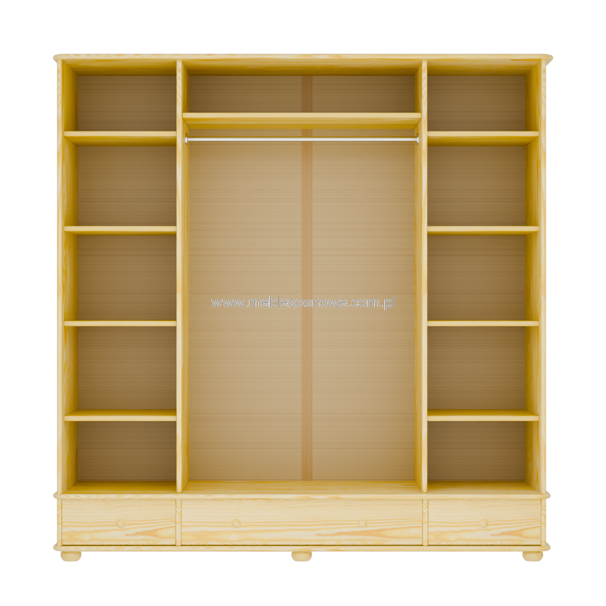 - Styl: klasyczny, Wesja: 3 szuflady, drążek oraz 9 półek,